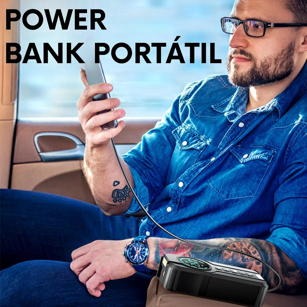 Compacta, potente e multifuncional, ela resolve quatro problemas em um único produto, seja no dia a dia, em viagens, trilhas, trabalho ou emergências na estrada.