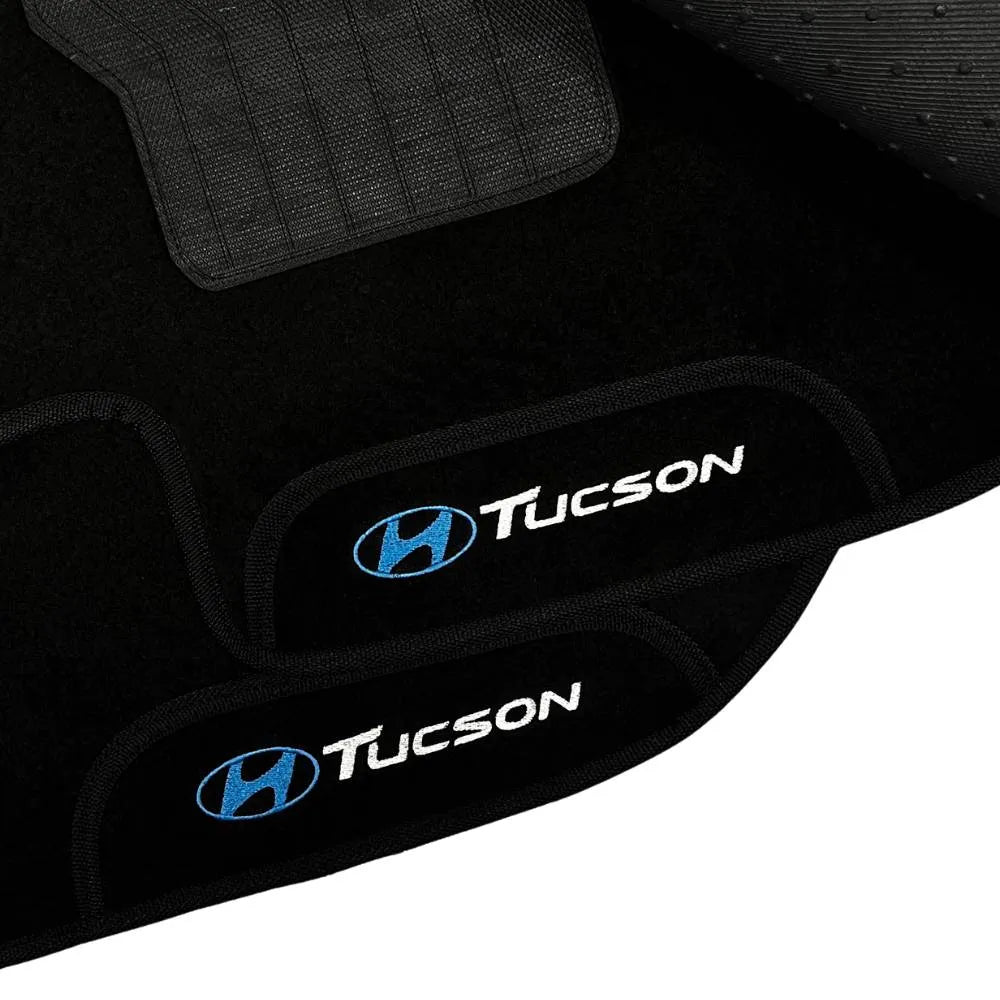 TAPETE CARPETE TUCSON 2004 A 2016 PRETO BORDADO 3 PEÇAS